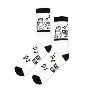White and black-coloured socks Moomintroll size EU 40-45. Material 60% Cotton, 33% Polyester, 4% Nylon, 2% Elastane, 1% Elastodiene. Delicate wash 30 degrees.