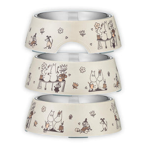 Fin matskål med motiv av Mummikarakterer. Det er 2 i 1 boller hvor den ytre delen med motiv er laget av melamin, mens den indre er av stål og enkelt kan tas ut for rengjøring og påfyll. Under er skålen gummiert, slik at de står stødig på underlaget og ikke glir.
